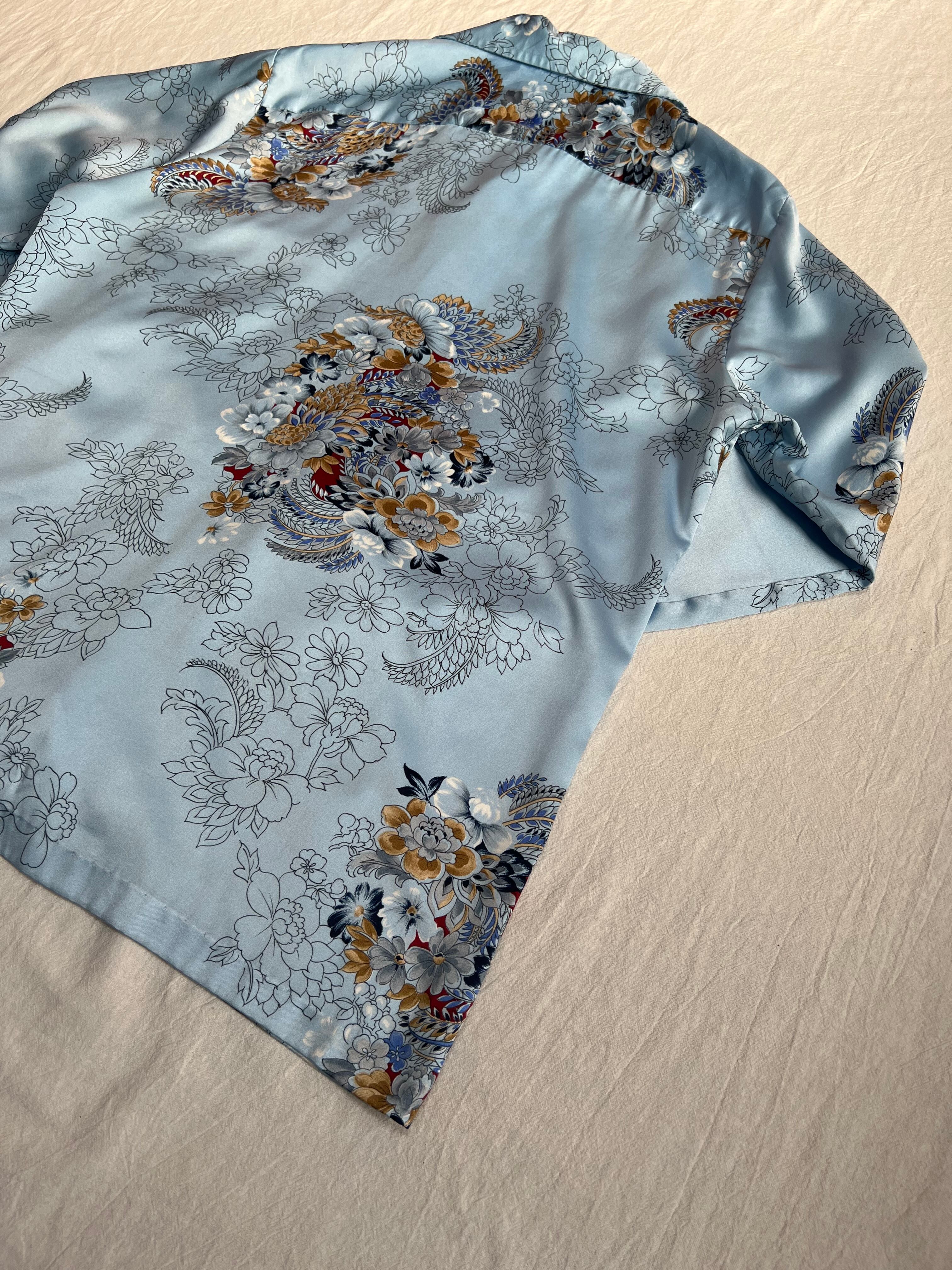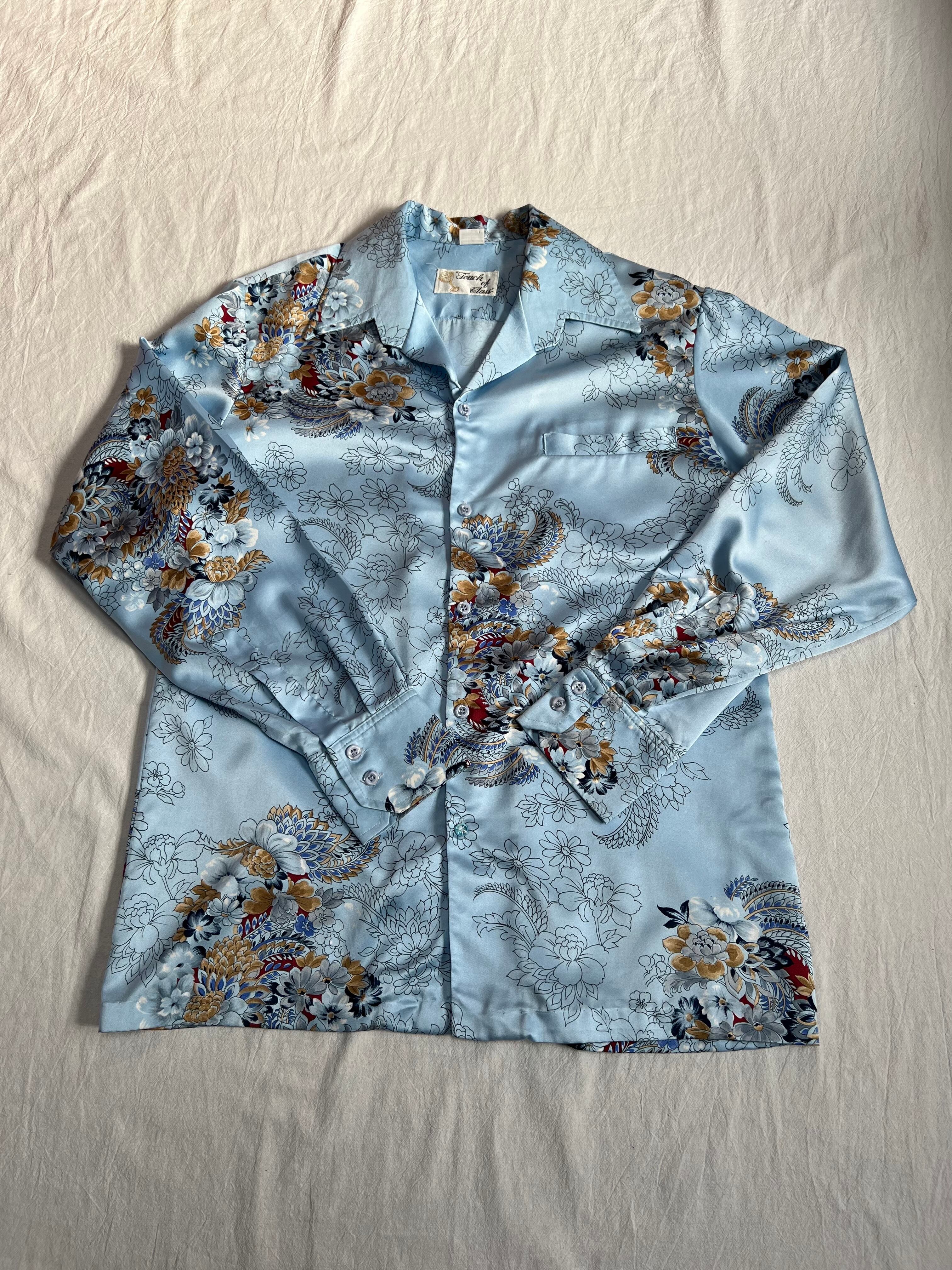 光沢感があり、色味のいい花柄のデザインシャツです。