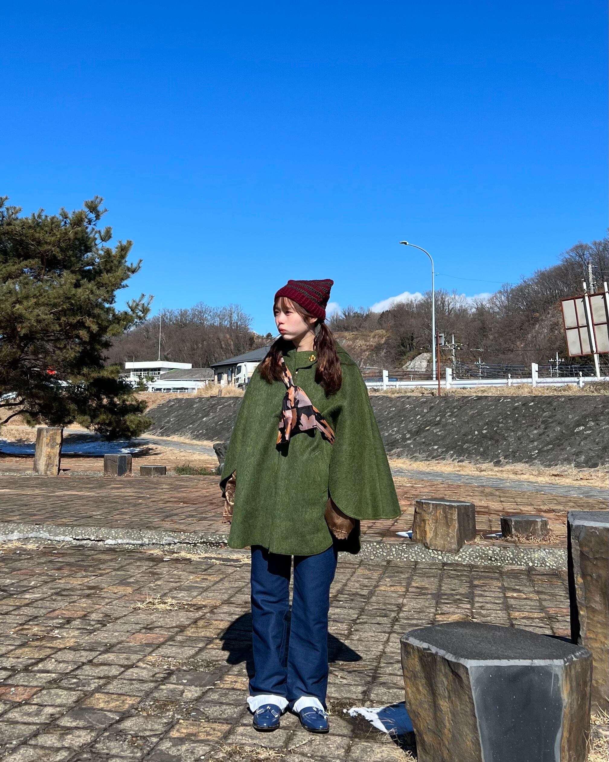 いい色味のカーキで素材もモヘアとなっており、程よい光沢感と手触りが良く、保温性も感じられるアイテムとなっております。